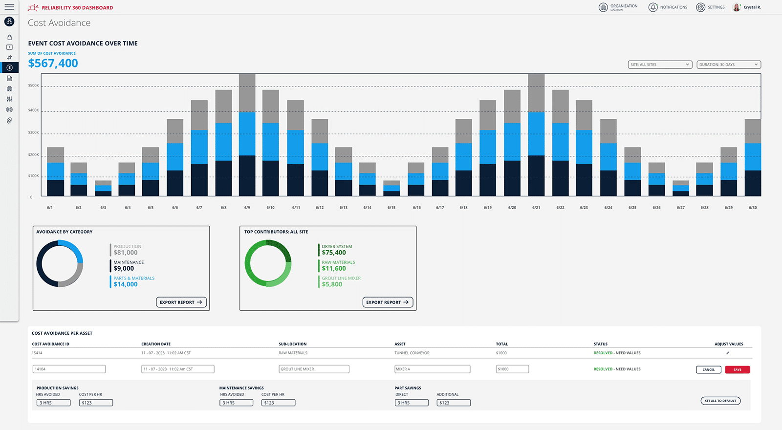 Our cost avoidance dashboard allows you to tailor cost avoidance calculations to fit your business. Drive uptime with machine health monitoring, ROI guaranteed.