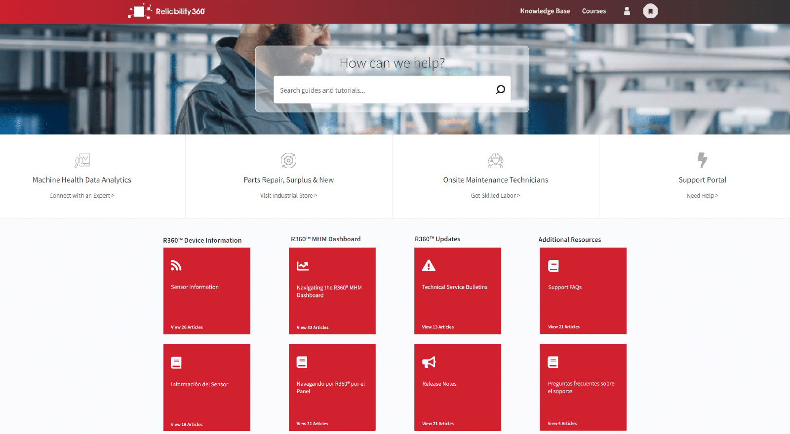 Our Knowledge Base is an online hub for easy access to product information, new releases, training tutorials and expanded services and support for our Reliability 360® Machine Health Monitoring Solution.